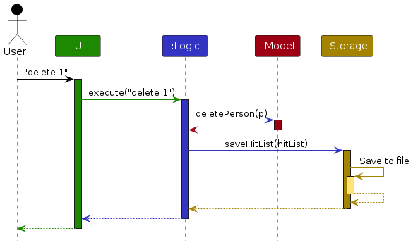 The Sequence Diagram below shows how the components interact with each other for the scenario where the user issues the command delete 1.
